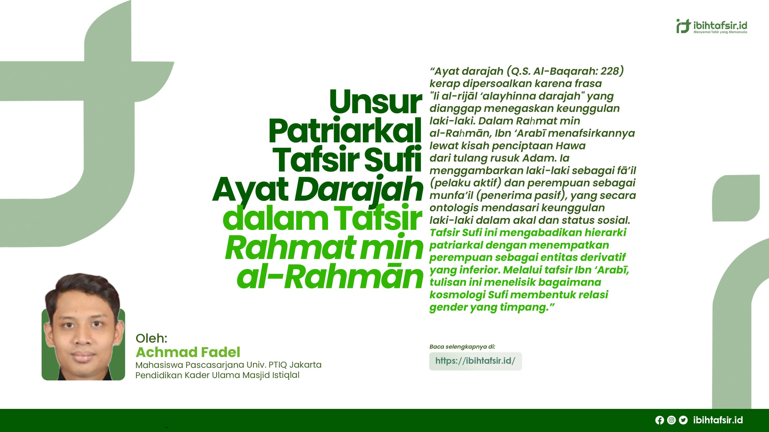 Kecenderungan itu begitu tampak dalam tafsir Ibn ‘Arabī yang disusun oleh Mahmud Gurāb berjudul Raḥmat min al-Raḥmān ketika menafsirkan darajah. Penciptaan Hawa dari tulang rusuk Adam dijadikan sebagai dasar hubungan laki-laki dan perempuan, padahal pendekatan tasawuf kerap digunakan untuk menegasikan semangat keadilan gender. Murata, misalnya, dalam The Tao of Islam (1992) menjadikan Ibn ‘Arabī sebagai sumber inspirasi untuk menjelaskan peran aktif-reseptif . Peran aktif-reseptif ini merupakan penafsiran baru terhadap ayat ini yang berbeda dengan penafsiran umum yang fokus menjelaskan fungsi sosial laki-laki dan perempuan.