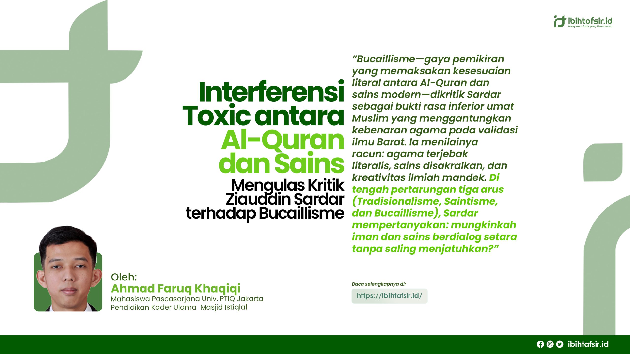 Penutup Bucaillisme mewakili pergeseran paradigmatik di mana penafsiran tidak lagi semata-mata upaya memahami teks suci, melainkan menjadi instrumen apologetik yang didasari oleh kompleks inferioritas teologis. Kritik Sardar berusaha membongkar lapisan-lapisan problem yang muncul dari ‘keindahan’ paradigma yang disodorkan oleh Bucaille kepada orang yang beriman.