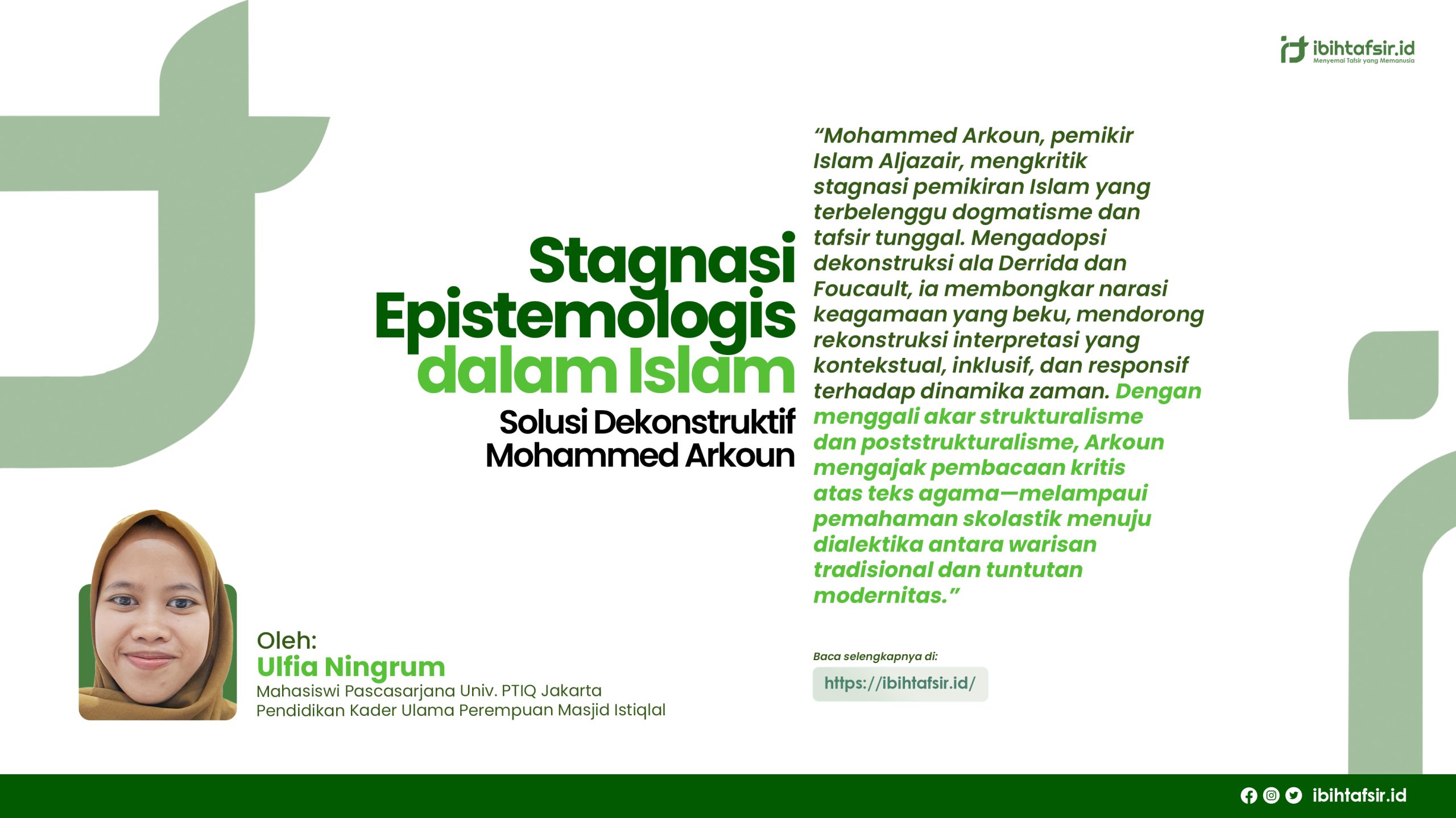 Mohammed Arkoun merupakan salah satu pemikir Islam modern yang pemikirannya banyak dipengaruhi oleh filsafat modern dan postmodern, seperti dekonstruksi Jacques Derrida dan konsep epistem Michel Foucault. Arkoun berupaya mengkritisi nalar Islam yang dianggap beku, dogmatis, dan tertutup terhadap perubahan. Dalam proyek intelektualnya, ia mencanangkan kritik nalar Islam dengan pendekatan dekonstruksi yang tidak hanya membongkar, tetapi juga merekonstruksi pemahaman terhadap Islam dan teks-teks keagamaannya.