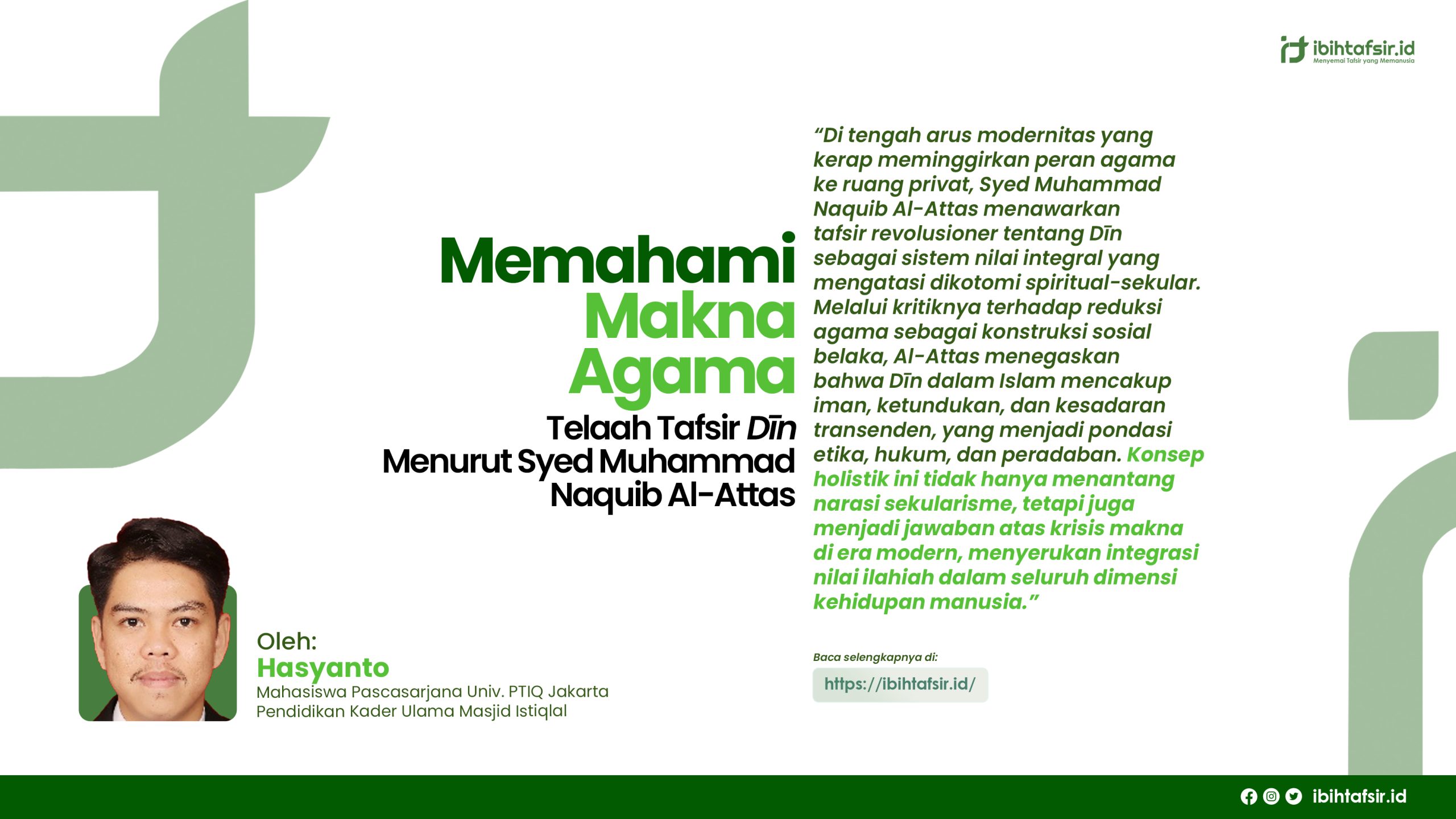 Pemikiran Syed Muhammad Naquib Al-Attas menyuguhkan sebuah paradigma yang menantang pemahaman umum tentang agama. Dīn, sebagaimana yang dijelaskan oleh Al-Attas, bukan sekadar aturan atau ritual yang dilakukan di masjid, melainkan suatu sistem yang mampu mentransformasi karakter dan perilaku manusia dari dalam. Dengan memahami dan mengamalkan Dīn secara menyeluruh, setiap individu dapat menemukan kembali makna sejati keberagamaan dan menjadikannya sebagai landasan bagi kehidupan yang lebih bermakna dan harmonis.