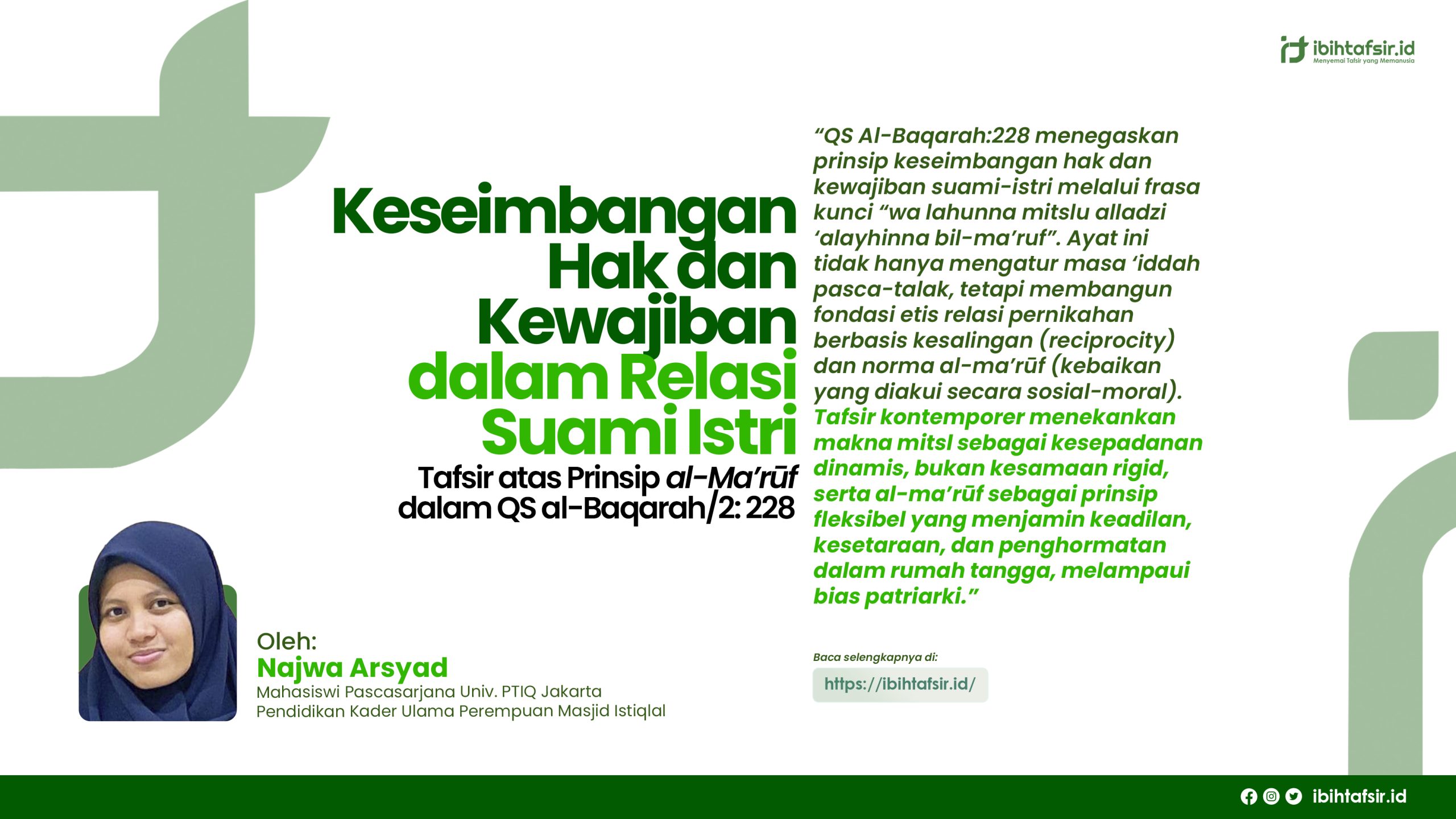 Keseimbangan Hak dan Kewajiban dalam Relasi Suami Istri: Tafsir atas Prinsip al-Ma’rūf dalam QS al-Baqarah/2: 228