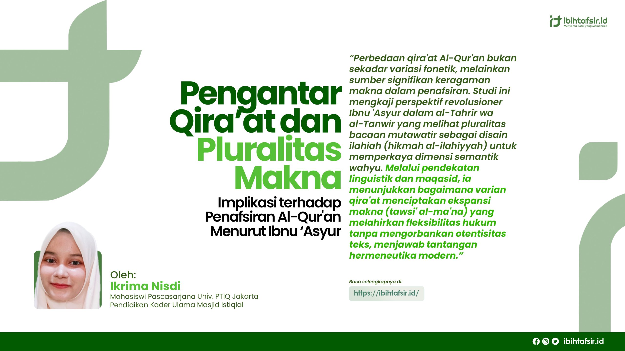 Qirā’āt sebagai sistem bacaan Al-Qur’an dengan transmisi mutawātir sering dipandang sebagai fenomena linguistik semata oleh sebagian sarjana modern. Farid Esack, misalnya, menilai bahwa perbedaan qirā’āt tidak memberikan kontribusi signifikan terhadap penafsiran Al-Qur’an. (Irham, 2020: 54) Namun, Ibn ʿĀsyūr -dalam al-Taḥrīr wa al-Tanwīr– menunjukkan bahwa perbedaan qirā’āt merupakan bentuk pluralitas makna (ta‘addud al-ma‘nā) yang tidak hanya sah, tetapi juga mencerminkan kehendak ilahi dalam memberi keluasan makna terhadap wahyu. (Ibnu ‘Asyur, 1997: 58)