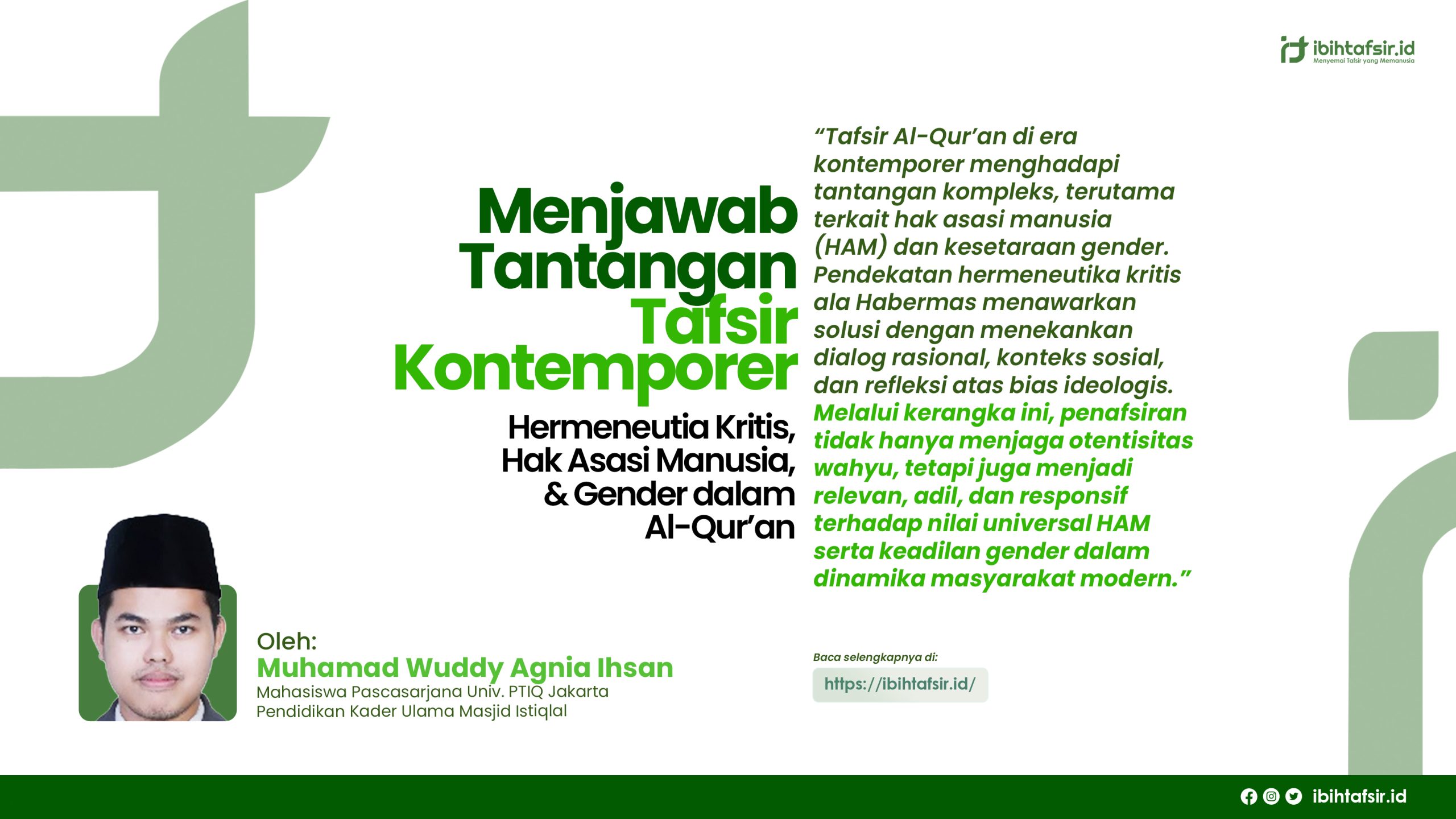 Ditengah perubahan sosial budaya yang cepat, penafsiran Al-Qur’an menghadapi tantangan besar, terutama terkait isu hak asasi manusia dan gender. Pendekatan hermeneutika kritis dari Habermas hadir sebagai kerangka pemikiran yang relevan untuk menjawab persoalan ini dengan cara yang segar.(Hardiman, 2015: 223).