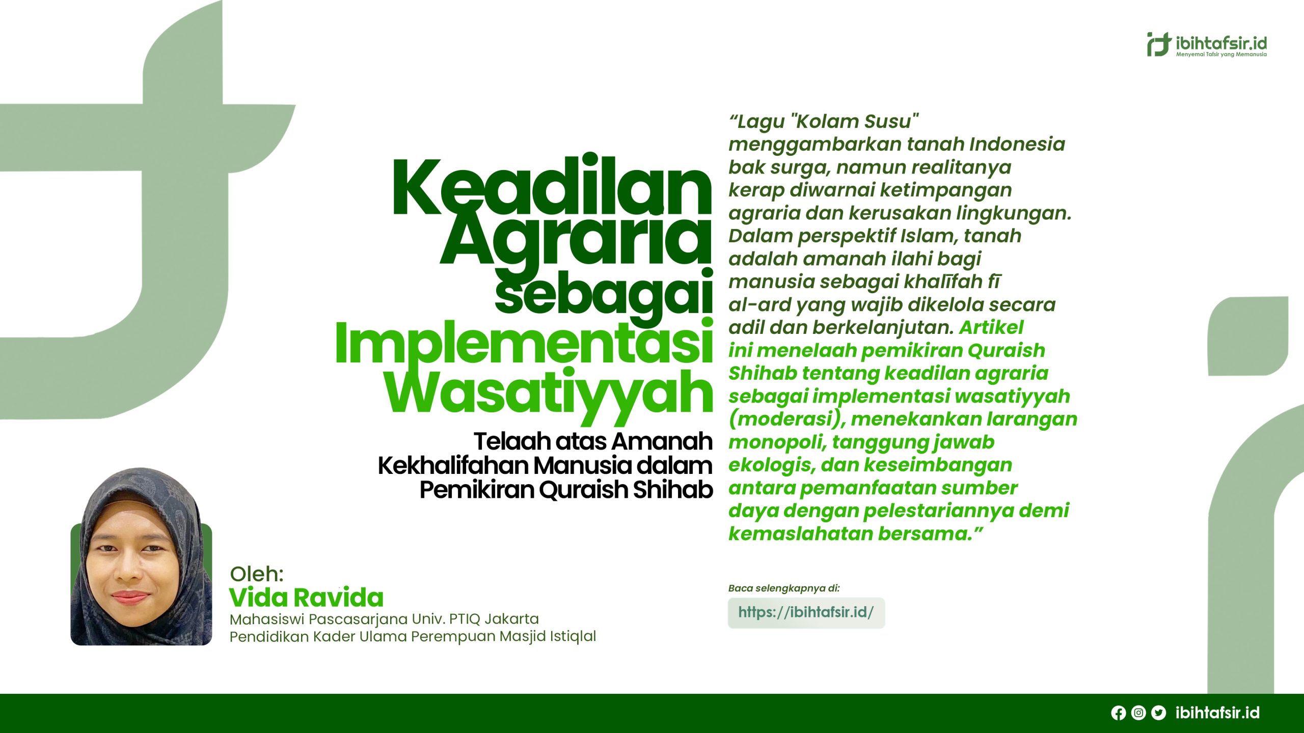 Keadilan Agraria sebagai Implementasi Wasaṭiyah: Telaah atas Amanah Kekhalifahan Manusia dalam Pemikiran Quraish Shihab