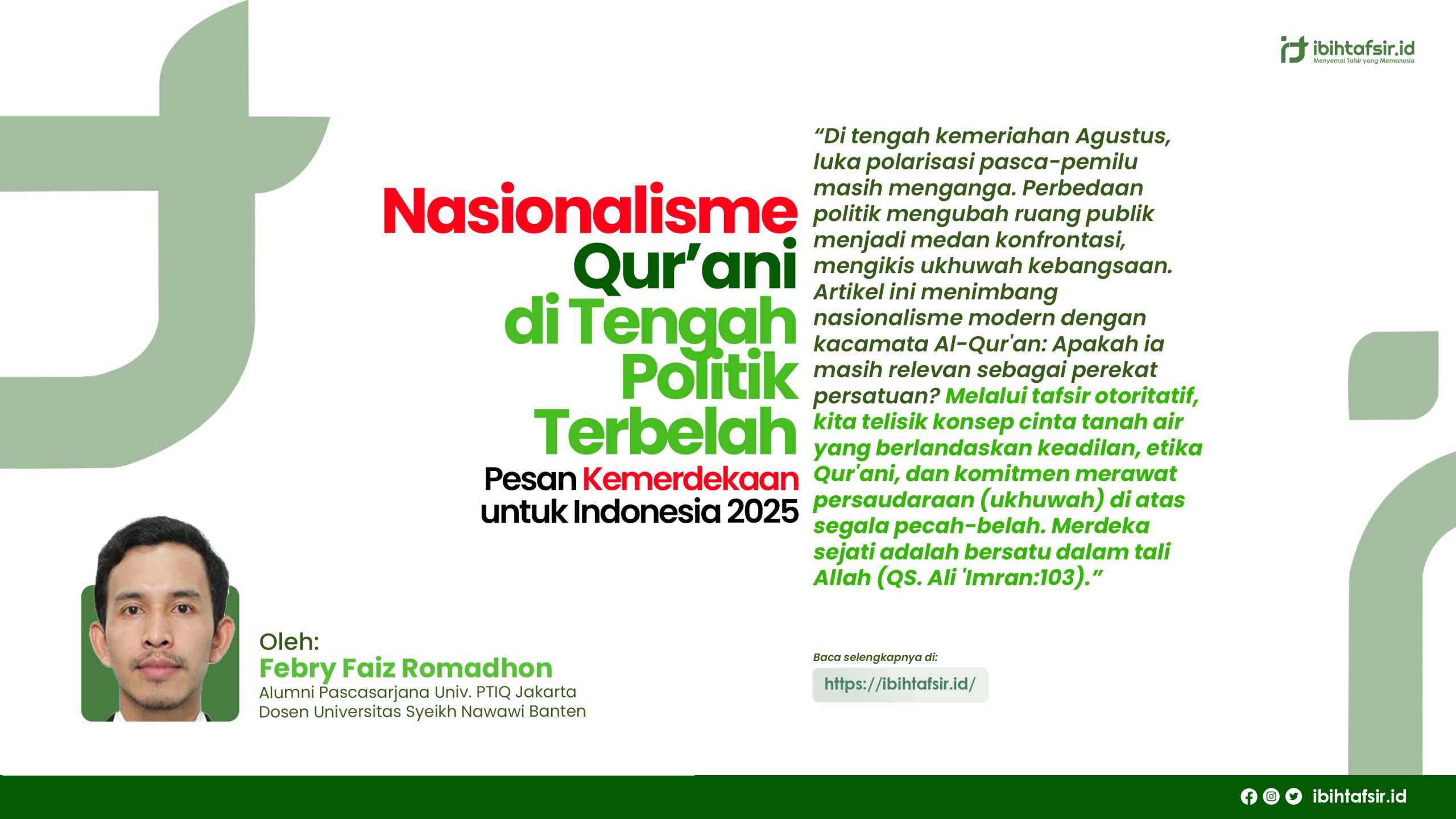 Mari kita jadikan Agustus 2025 sebagai momentum untuk menimbang kembali nasionalisme kita dengan timbangan Al-Qur`an.