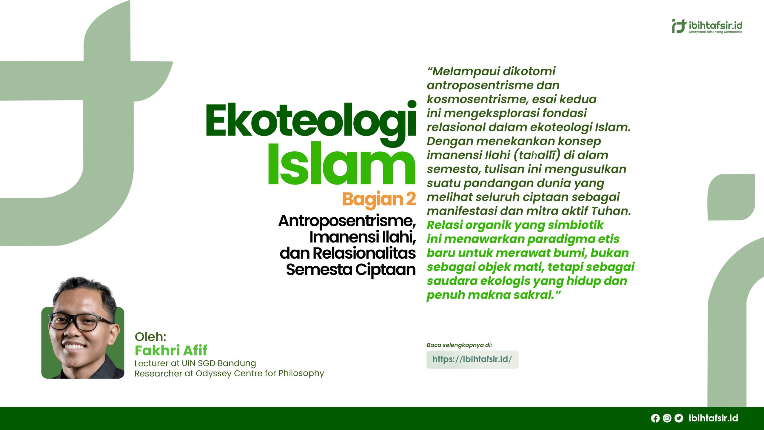 Sebagai catatan penutup, saya perlu menegaskan bahwa elaborasi imanensi dan relasionalitas Ilahi demikian tidak mesti dipahami sebagai panteisme—menyamakan Tuhan dengan ciptaan-Nya—sehingga menyebabkan kekafiran teologis. Berbeda dari itu, saya mengajukan perlunya memahami relasionalitas dalam ekoteologi Islam sebagai “panenteisme”, di mana Tuhan diposisikan secara imanen dalam suatu proses di alam semesta namun tidak menjadikan-Nya identik dengan semesta ciptaan. Dalam pada itu, eksistensi alam semesta berikut seluruh penghuninya, termasuk manusia, dikondisikan oleh, dan merupakan manifestasi dari, relasionalitas bersama Sang Ilahi (Mathews, 1991). Namun, hal demikian tidak menjadikan mereka sederajat apa lagi sama dengan Tuhan.