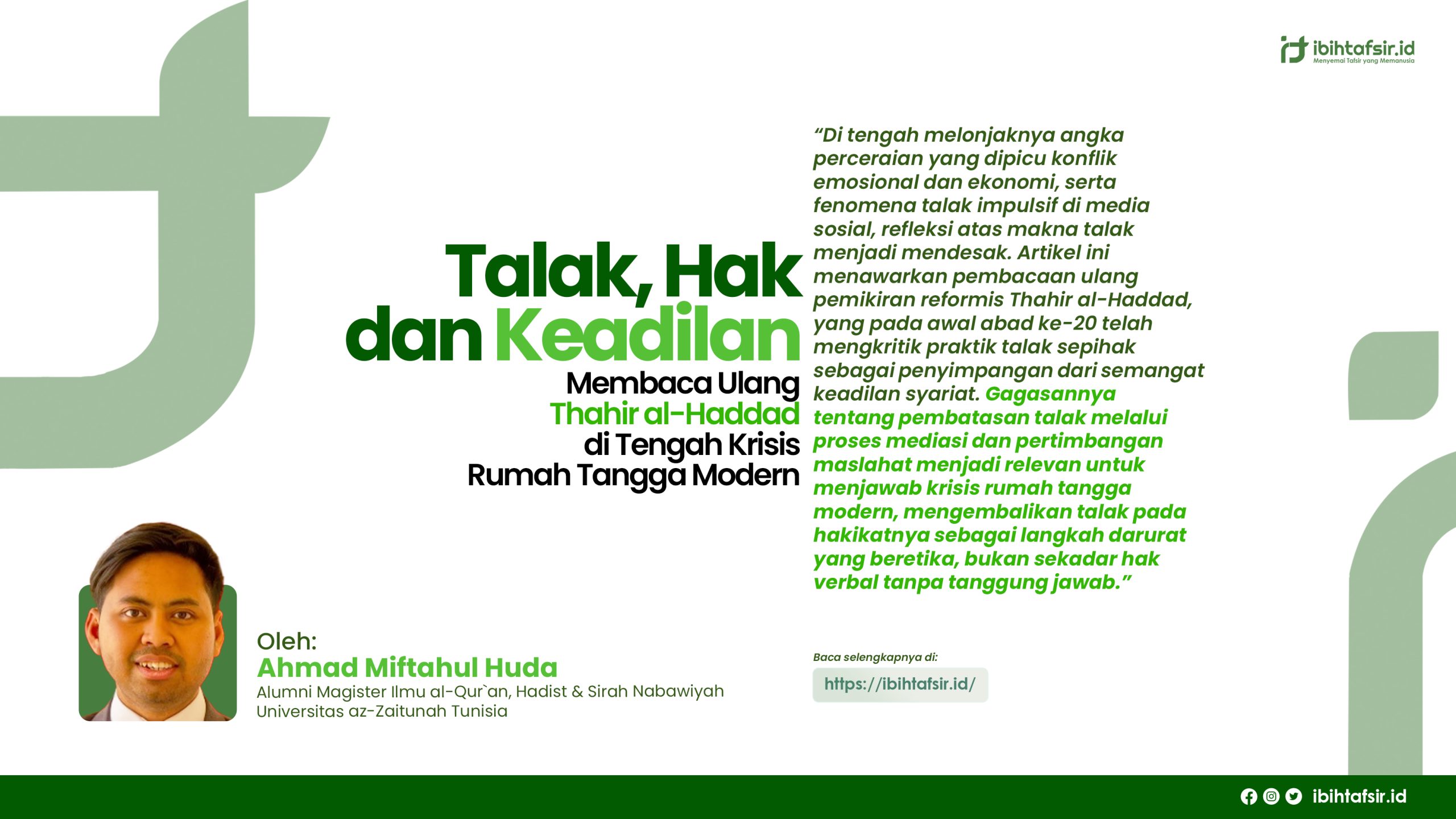 Untuk menjawab pertanyaan tersebut, kita perlu merujuk pada pemikiran reformis Islam awal abad ke-20, yaitu Thahir Haddad, seorang intelektual Tunisia yang visioner. Melalui karyanya yang monumental, Imra’atuna fi asy-Syari‘ah wal-Mujtama‘ (Perempuan Kita dalam Syariat dan Masyarakat), Haddad menawarkan bacaan ulang tentang hak talak dan keadilan gender dalam keluarga. Artikel ini akan mengeksplorasi gagasan Haddad sebagai pijakan untuk mereformasi pemahaman talak di tengah krisis rumah tangga modern, dengan fokus pada aspek etis, sosial, dan hukum.