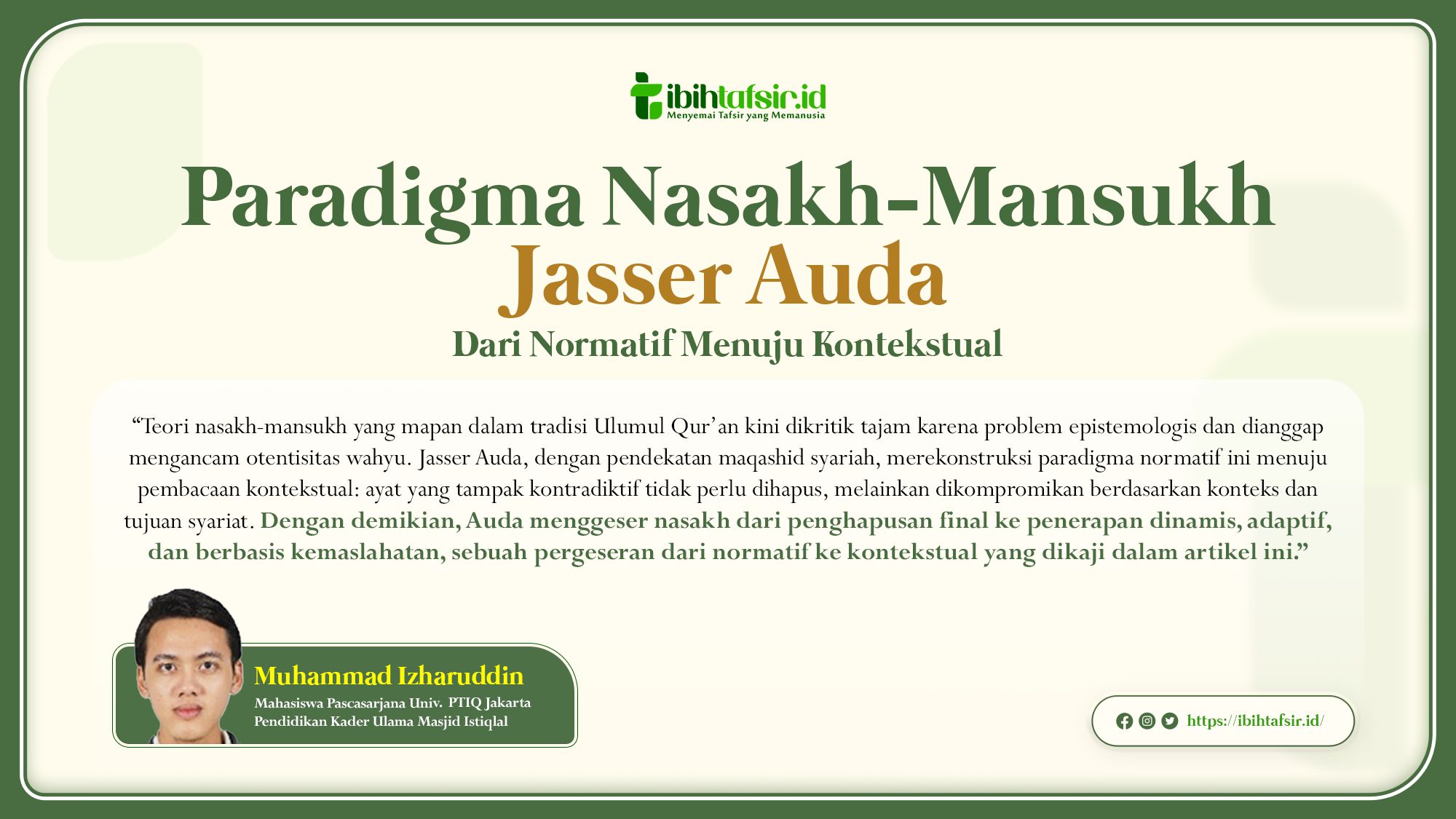 Fikri, Rijalul. 2021. Teori Naskh Al-Qur’an Kontemporer: Studi Pemikiran Mahmud Muhammad Taha dan Jasser Auda, SPs UIN Jakarta.